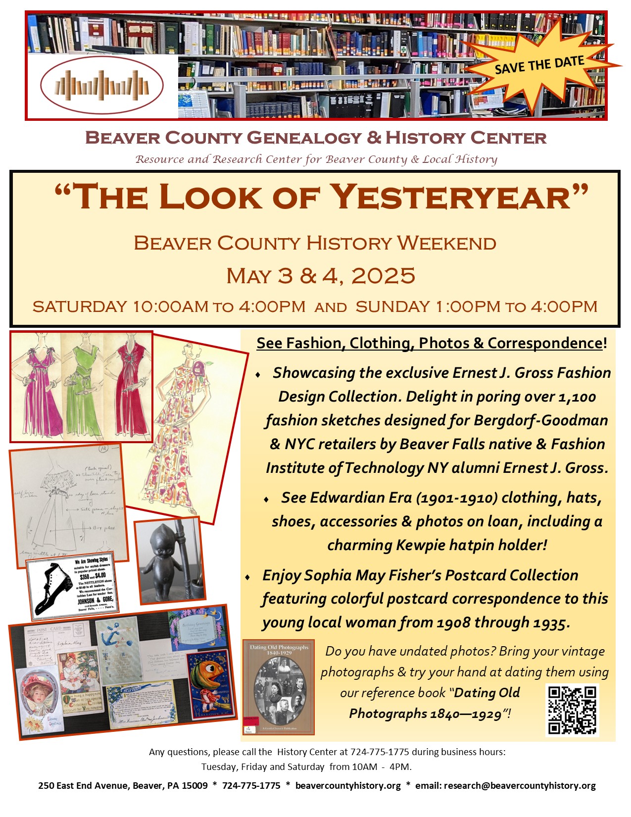 "The Look of Yesteryear" - Beaver County History Weekend - May 3 & 4. 2025