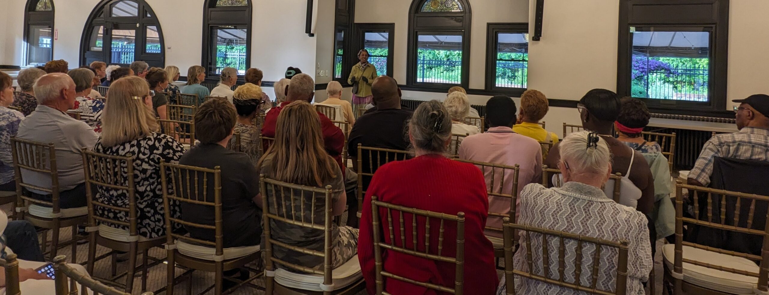 Cindy & Ed Murphy host a lively talk and question/answer session on the history of Aliquippa, Woodlawn and the Jones & Laughlin Steel Company.